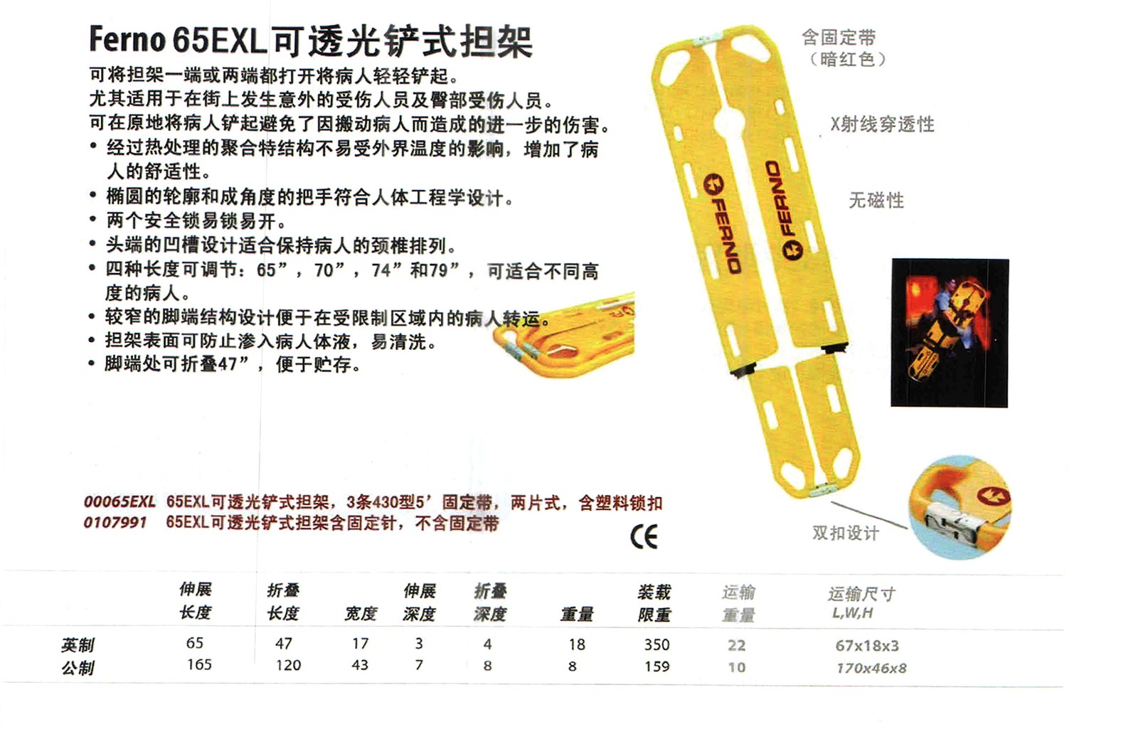 FERNO擔架, 65EXL可透X光鏟式擔架,